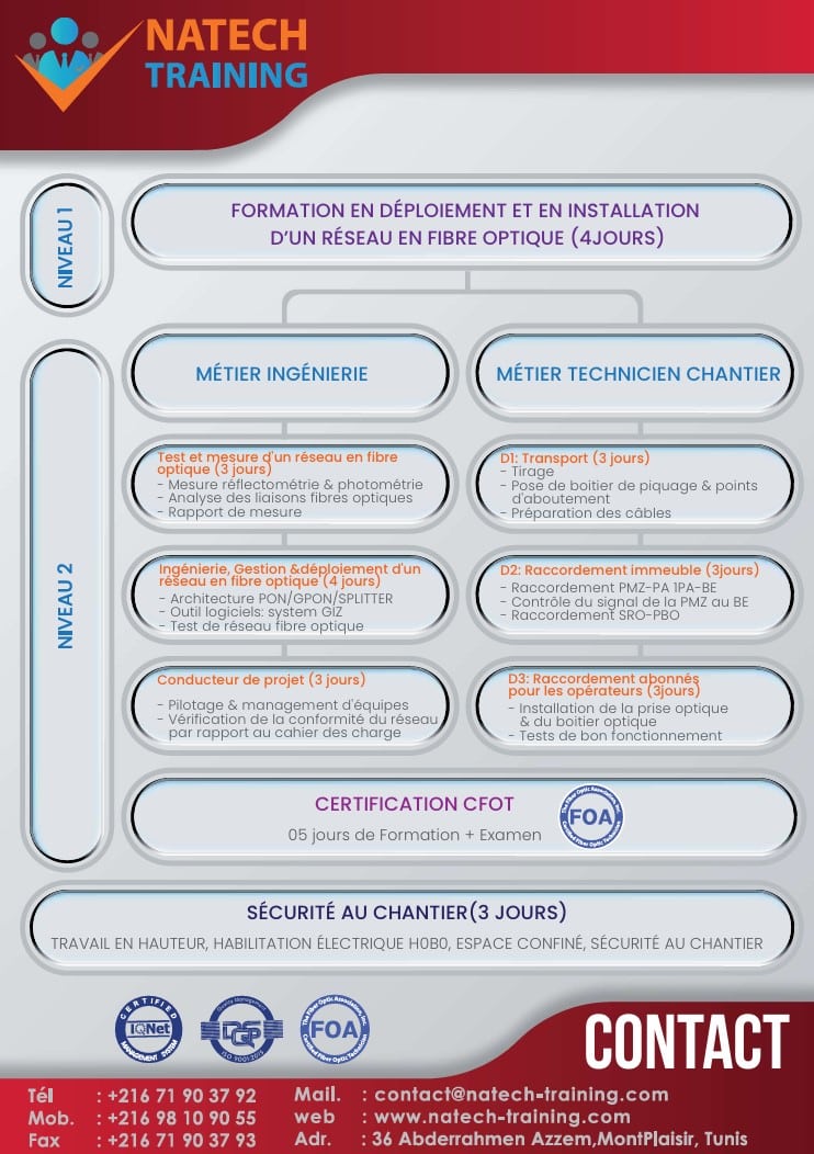 Programme de la formation Fibre optique Niveau 1 et 2 Share on FacebookShare on Linkedin Laisser un commentaire Annuler la réponseVous devez vous connecter pour publier un commentaire.