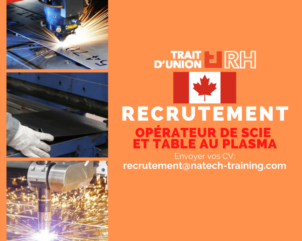Société Canadienne recrute Opérateur de scie et table au plasma